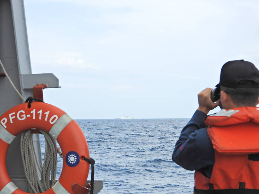 Meanwhile, the navy released video footage of its sailors on the Cheng Kung-class guided-missile frigate ROCS Tian Dan shadowing the Chinese frigate Xuzhou, which it said was filmed on Saturday in the seas to the south of Taiwan proper.