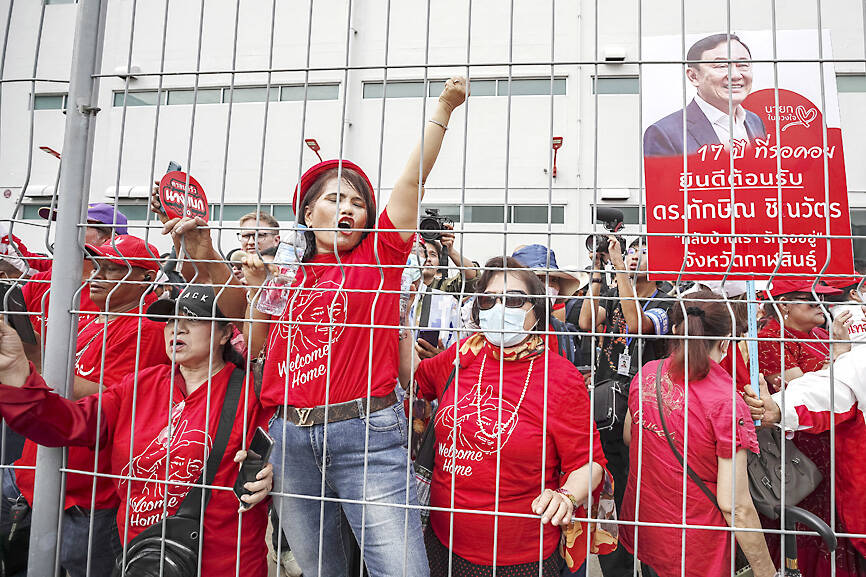 Thaksin, loved and loathed in almost equal measure in Thailand, landed in a private jet at Bangkok’s Don Mueang International Airport yesterday morning, and was greeted by hundreds of “Red Shirt” supporters waving banners and singing songs.