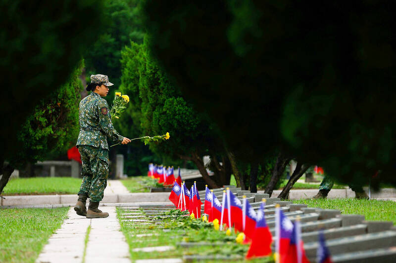 A powerful defense is needed to maintain peace, President Tsai Ing-wen (蔡英文) said yesterday as she led her final remembrance service as Taiwan’s commander in chief for those killed during the 1958 defense of Kinmen County against a Chinese People’s Liberation Army (PLA) invasion.