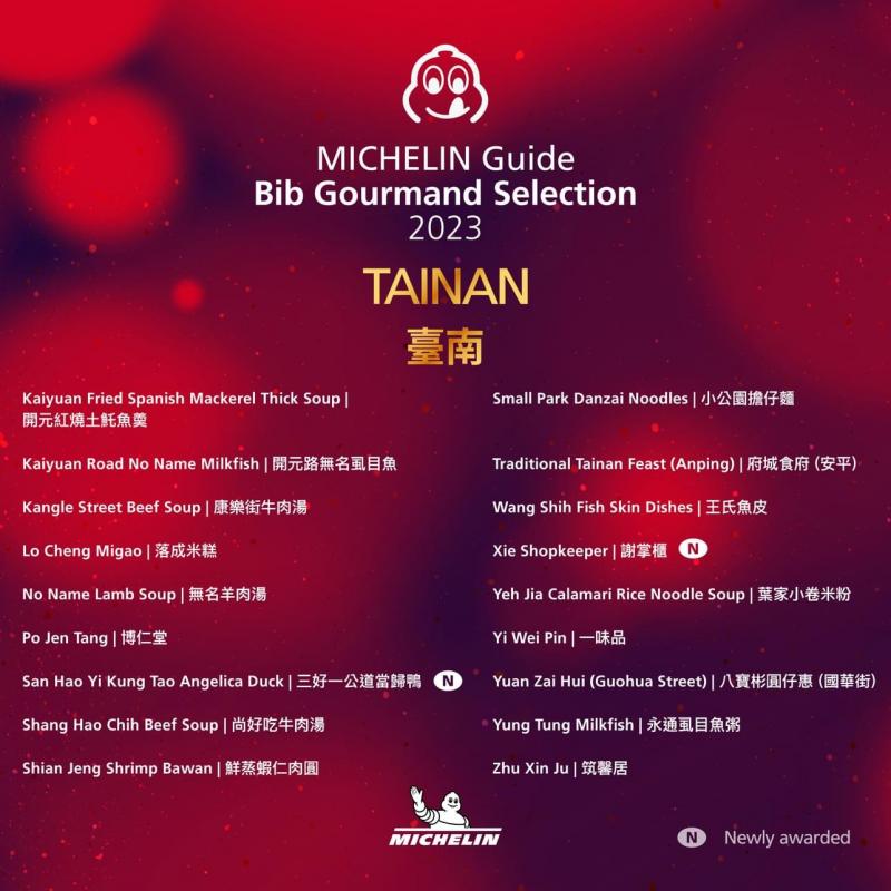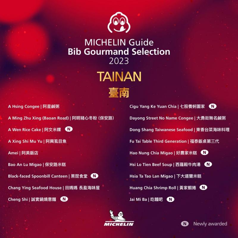 The number of Bib Gourmand restaurants in Tainan increased to 36 from 27 last year.