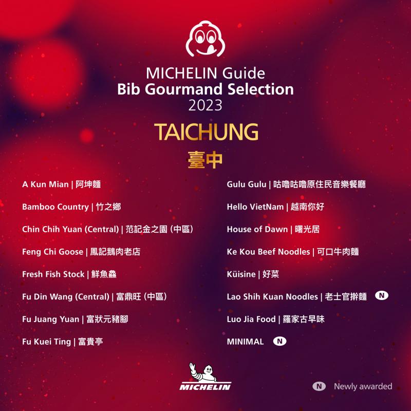 Michelin Guide Taiwan yesterday announced that 139 eateries in Taipei, Taichung, Tainan and Kaohsiung had received the Bib Gourmand Award, down from 141 last year.