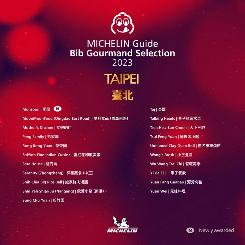 The Bib Gourmand Award was created to recognize restaurants that offer a quality three-course meal at NT$1,000 or less.