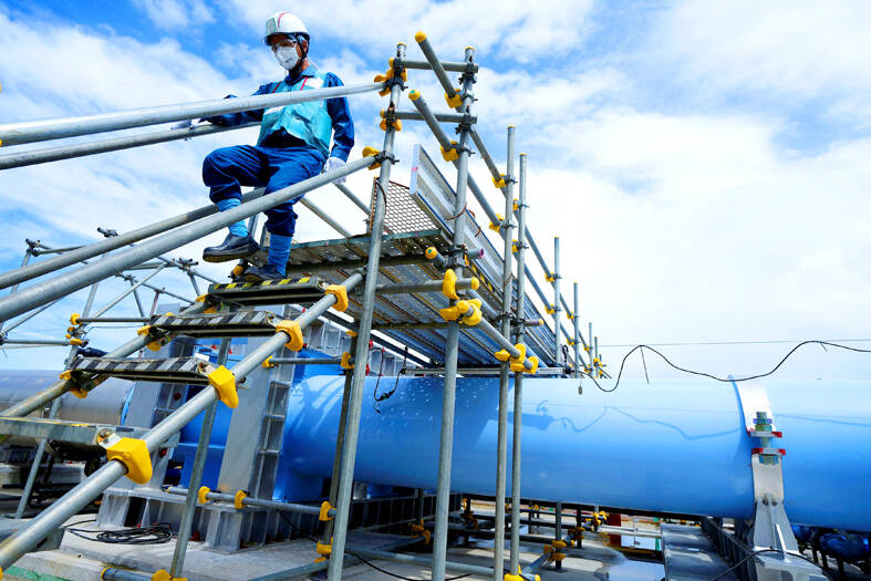CALL FOR SUPPORT: President William Lai called on lawmakers across party lines to ensure the livelihood of Taiwanese and that national security is protected President William Lai (賴清德) yesterday called for bipartisan support for Taiwan’s investment in self-defense capabilities at the christening and launch of two coast guard vessels at CSBC Corp, Taiwan’s (台灣國際造船) shipyard in Kaohsiung. The Taipei (台北) is the fourth and final ship of the Chiayi-class offshore patrol vessels, and the Siraya (西拉雅) is the Coast Guard Administration’s (CGA) first-ever ocean patrol vessel, the government said. The Taipei is the fourth and final ship of the Chiayi-class offshore patrol vessels with a displacement of about 4,000 tonnes, Lai said. This ship class was ordered as a result of former president Tsai Ing-wen’s (蔡英文) 2018