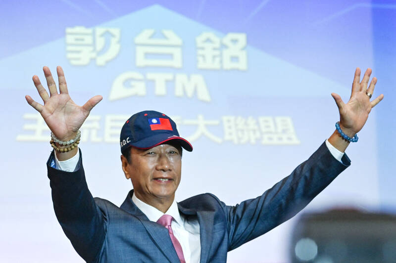 Among all the presidential candidates, “I am the only entrepreneur with the practical management skills. I am an entrepreneur with nearly five decades of practical experience — who else is better suited to lead Taiwan’s political sphere [than I]?” Gou said yesterday.