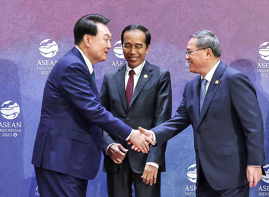 “Disagreements and disputes may arise between countries due to misperceptions, diverging interests or external interferences,” Chinese Premier Li Qiang (李強) said at the start of an ASEAN Plus Three meeting with Japan and South Korea in Jakarta.