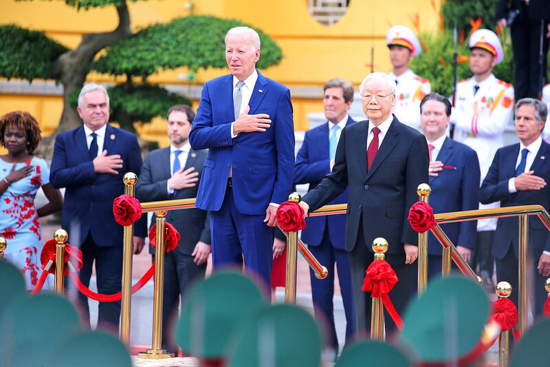 With China’s economic slowdown and President Xi Jinping’s (習近平) consolidation of political power, Biden sees an opportunity to bring more nations — including Vietnam and Cambodia — into the US’ orbit.