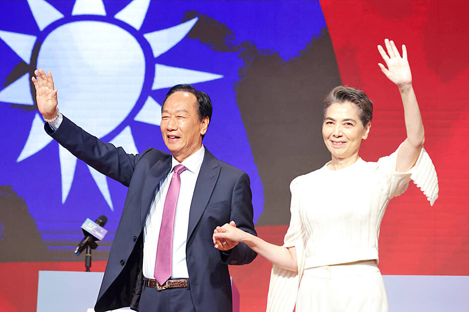 Gou, the founder of Hon Hai Precision Industry Co (鴻海精密), said at an event in Taipei that he would depend on Lai’s “unique female perspective to foster a more equitable and gender-balanced culture in Taiwan.”