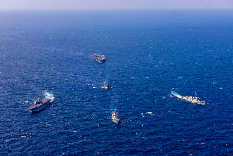 The South Korean and US navies held joint maritime drills with Japan’s Self-Defense Forces in waters near South Korea’s Jeju Island on Monday and yesterday, the South Korean Navy said.