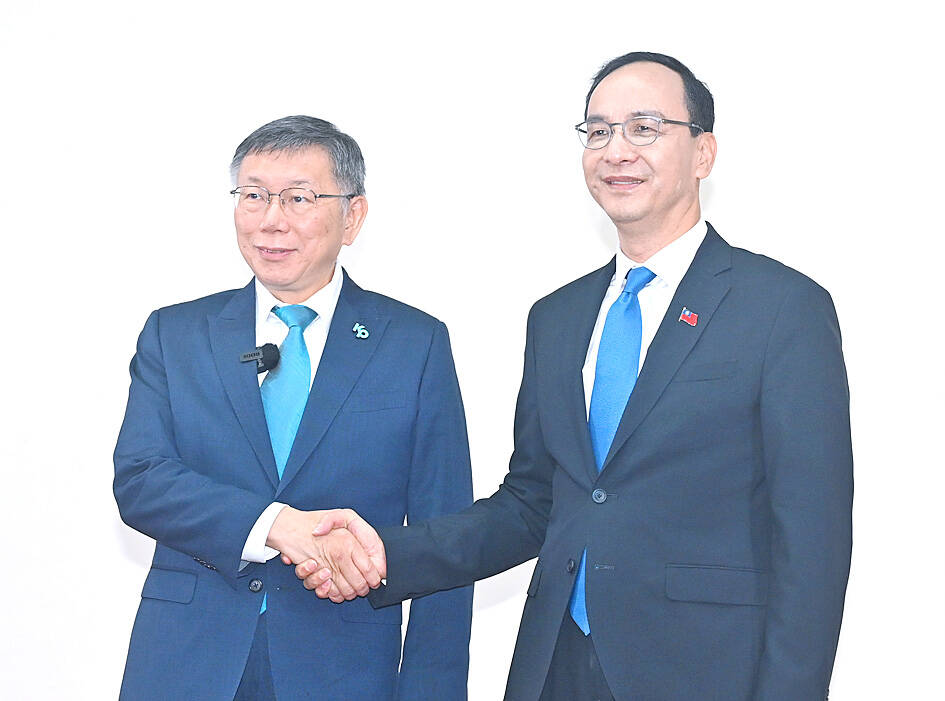 “Ko met with the KMT today and had a secret meeting with independent candidate Terry Gou (郭台銘) on Sunday. He can change his tune quickly as long as he has something to gain politically. Ko’s lack of political convictions is astonishing,” DPP spokesman Chang Chih-hao (張志豪) said.