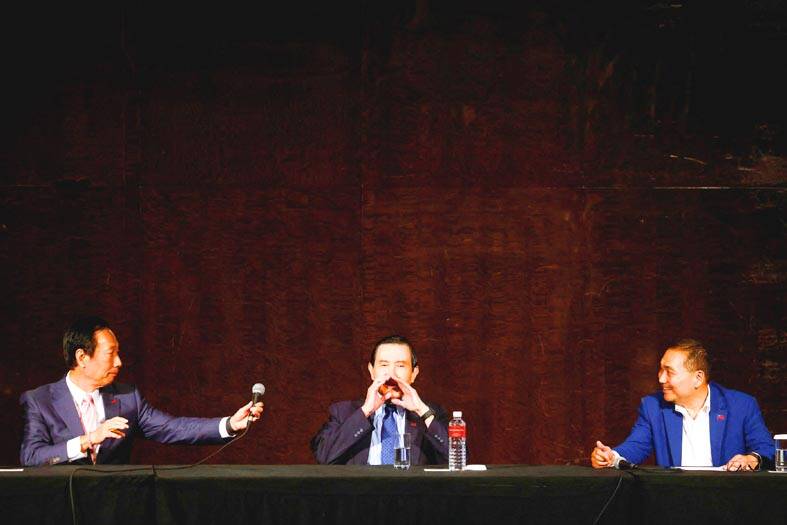 Gou’s campaign said it had originally planned to hold closed talks between the three candidates on the 25th floor of the hotel, but the KMT insisted on live-streaming the discussion with Chu and Ma also present.