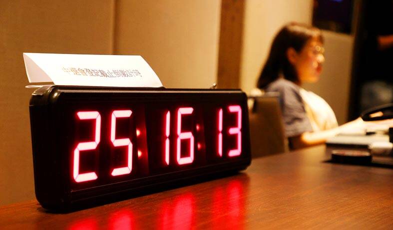 Ko and Gou entered late to the room, leaving the KMT members alone at a desk next to a digital clock counting down to the registration deadline at 5pm today.