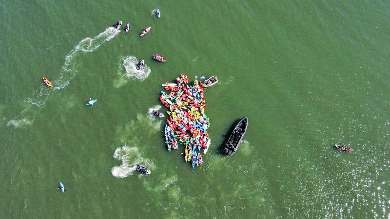 Authorities agreed to let the protest run for 30 hours, but police boats started closing in when the deadline passed and crowds of protesters refused to leave the water.