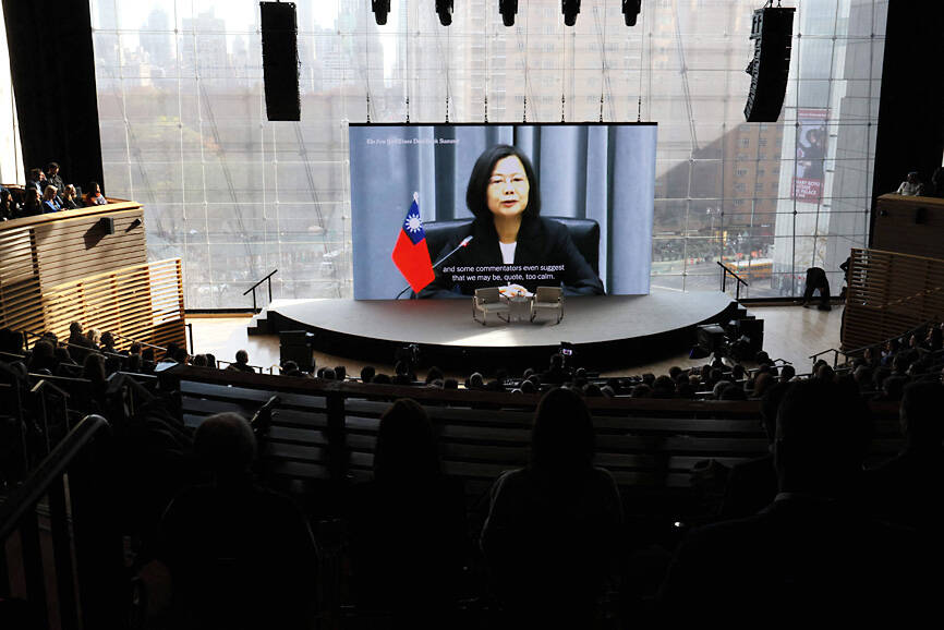 “My thought is that perhaps this is not a time for them [China] to consider a major invasion of Taiwan,” Tsai said in a prerecorded interview for the DealBook Summit held by the newspaper on Wednesday.