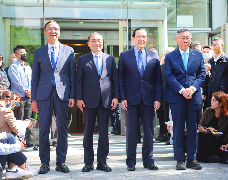 Listed as defendants are Chinese Nationalist Party (KMT) presidential candidate and New Taipei City Mayor Hou You-yi (侯友宜), KMT Chairman Eric Chu (朱立倫), former president Ma Ying-jeou (馬英九) of the KMT and Taiwan People’s Party (TPP) Chairman and presidential candidate Ko Wen-je (柯文哲).