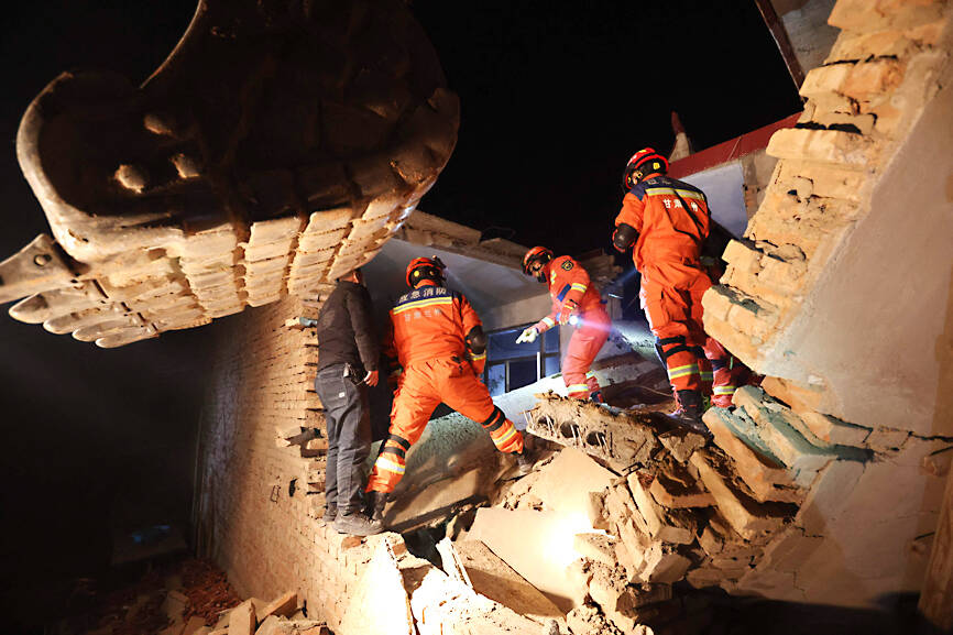 Rescuers in remote villages of northwest China yesterday dug through the rubble of collapsed homes in freezing conditions after the nation’s deadliest earthquake in years killed at least 127 people.