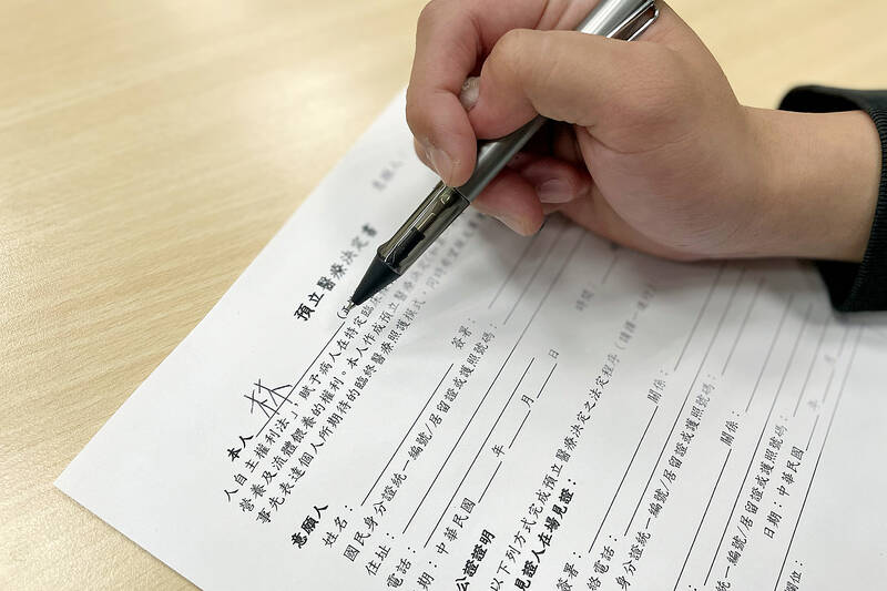 Less than 1 percent of 19.6 million adults in Taiwan have signed a living will, the Patient Autonomy Research Center (PARC) said yesterday as it marked the fifth anniversary of the enactment of the Patient Right to Autonomy Act (病人自主權利法).