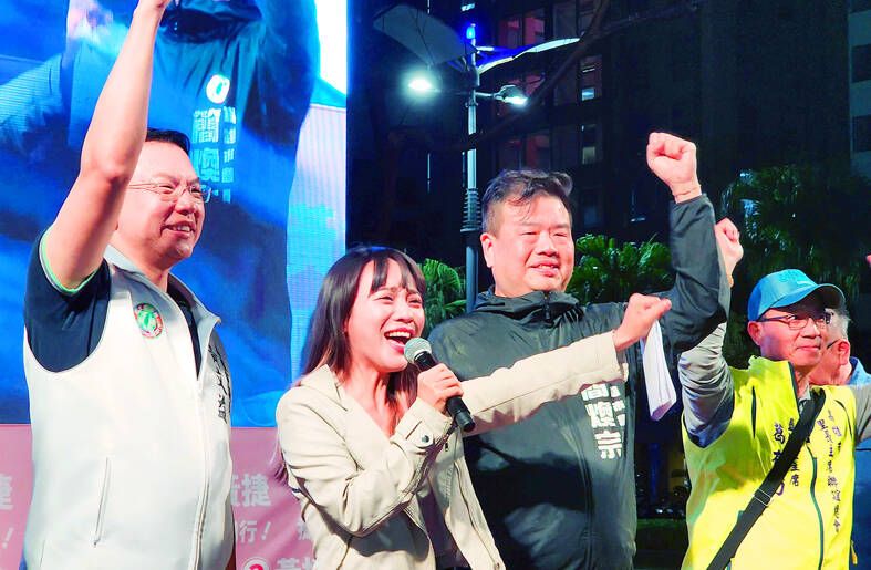 Kaohsiung City Councilor Huang Jie (黃捷) — who joined the DPP last year and was nominated for Kaohsiung’s sixth electoral district after DPP Legislator Chao Tian-lin (趙天麟) dropped out of the race due to an extramarital affair — upset KMT Kaohsiung City Councilor Chen Mei-ya (陳美雅).