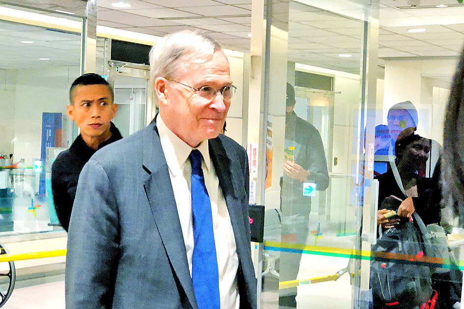 Two former senior US officials arrived in Taiwan yesterday for post-election talks and to underscore the US government’s “longstanding interest” in peace across the Taiwan Strait, the American Institute in Taiwan (AIT) said yesterday.