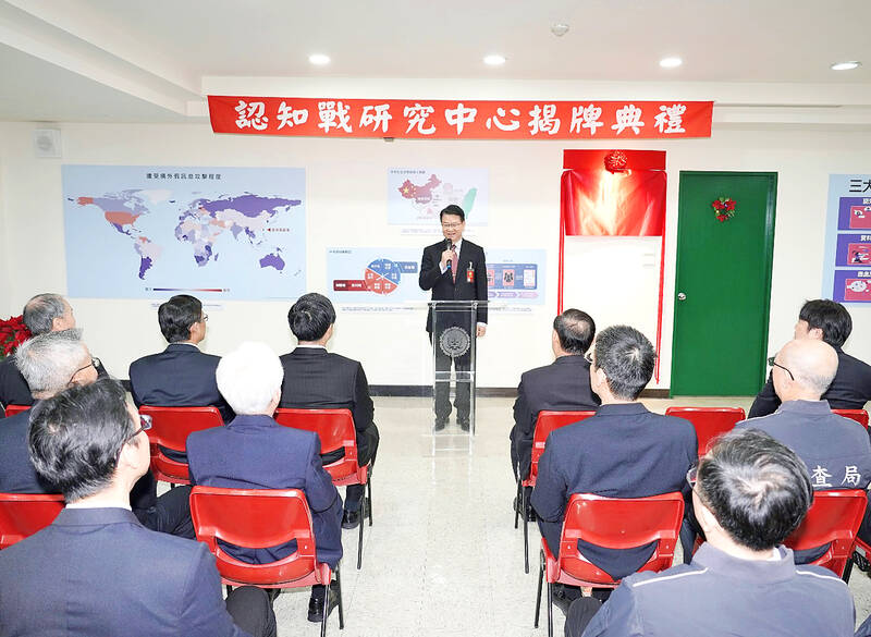 The Ministry of Justice Investigation Bureau (MJIB) yesterday inaugurated the Cognitive Warfare Research Center dedicated to studying the threat of online disinformation to Taiwan’s democracy and security.