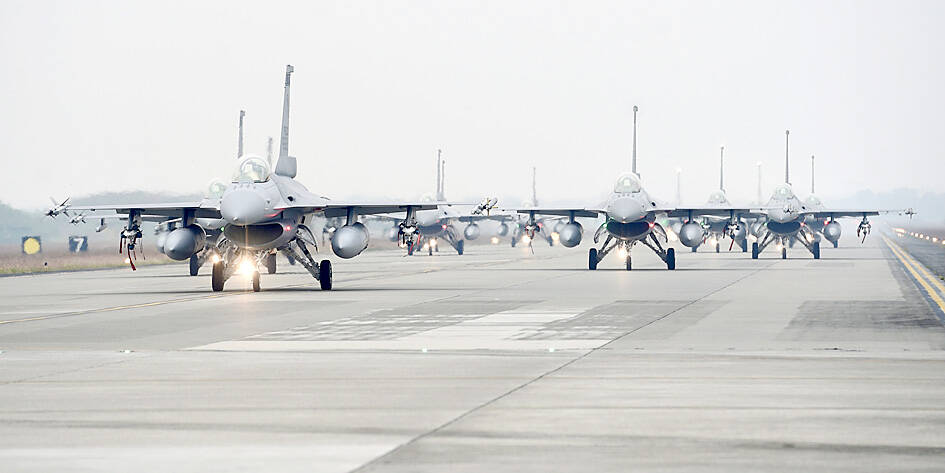 The runway of the Ching Chuan Kang (清泉崗) Air Base in Taichung, which was originally built with the assistance of the US military, is 60m wide, as it was built to accommodate B-52 bombers. It was decided that runways at Taiwan’s other bases, which are 45m to 50m in width, should be widened to match that of Ching Chuan Kang, the source said.