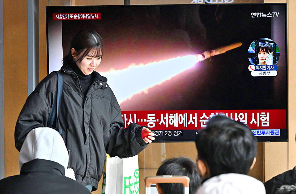 Pyongyang yesterday extended a provocative series of weapons tests by firing cruise missiles into the sea, as North Korean leader Kim Jong-un called for his military to step up war preparations and toured a shipyard.