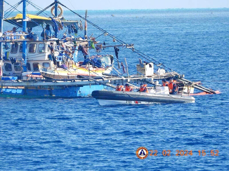 The BRP Datu Sanday was supplying fuel to fishers near the Scarborough Shoal — known as Huangyan Island (黃岩島) in China and Taiwan, which also lay claim to it — when it was harassed by a China Coast Guard vessel and three other Chinese ships on Thursday, the Philippine Coast Guard said.