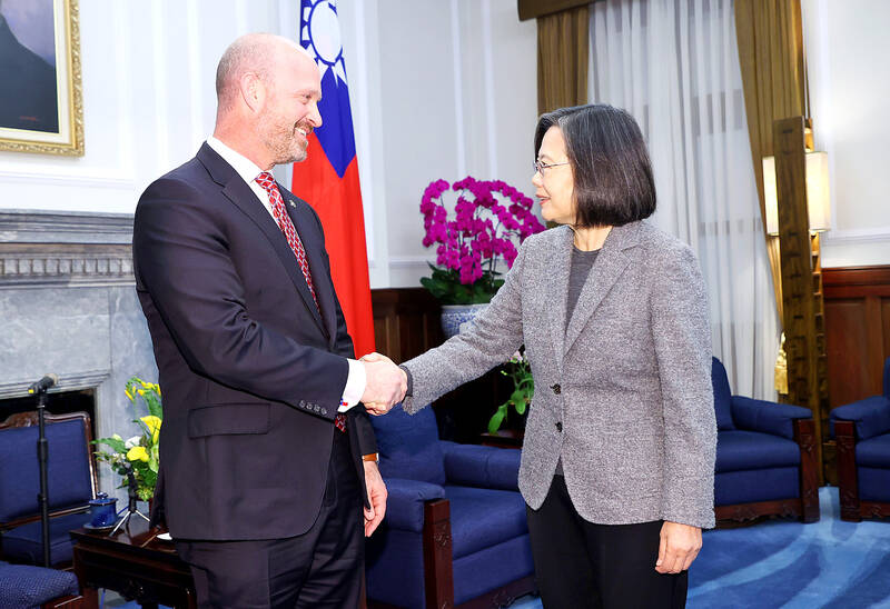 Taiwan ranks fourth in the latest Index of Economic Freedom released by the US Heritage Foundation, which foundation president Kevin Roberts delivered personally to President Tsai Ing-wen (蔡英文) and Vice President William Lai (賴清德) yesterday while reaffirming Washington’s support for the nation’s security.
