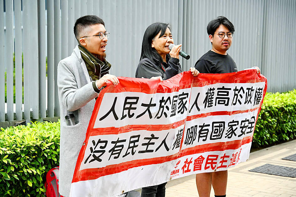 “National security is important to the people, but it must be based on democracy, freedom and rule of law,” activist Chan Po-ying (陳寶瑩) said.