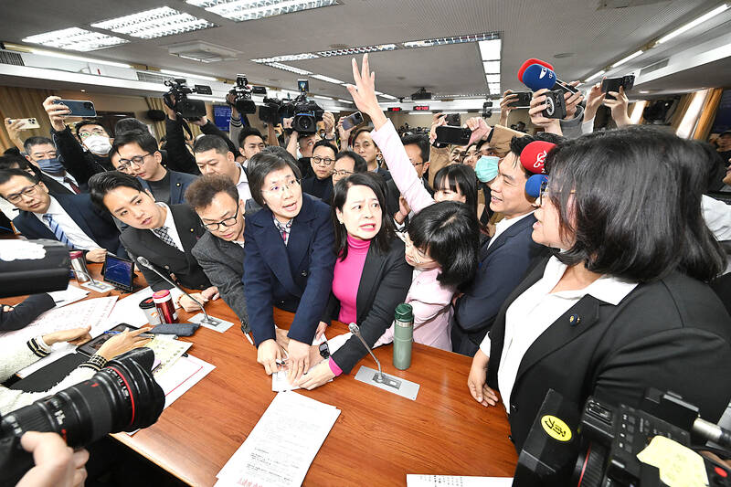 The start of the meeting was delayed for 30 minutes as lawmakers across party lines raised the point of order. KMT lawmakers demanded that Kuan apologize for unilaterally changing the presentation’s title, saying it showed her contempt and disrespect for Chin and other lawmakers on the committee.