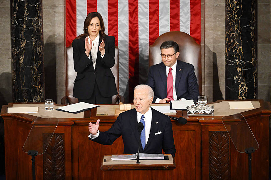 US President Joe Biden on Thursday vowed to support peace and stability across the Taiwan Strait, the first time he has done so in a state of the union address.