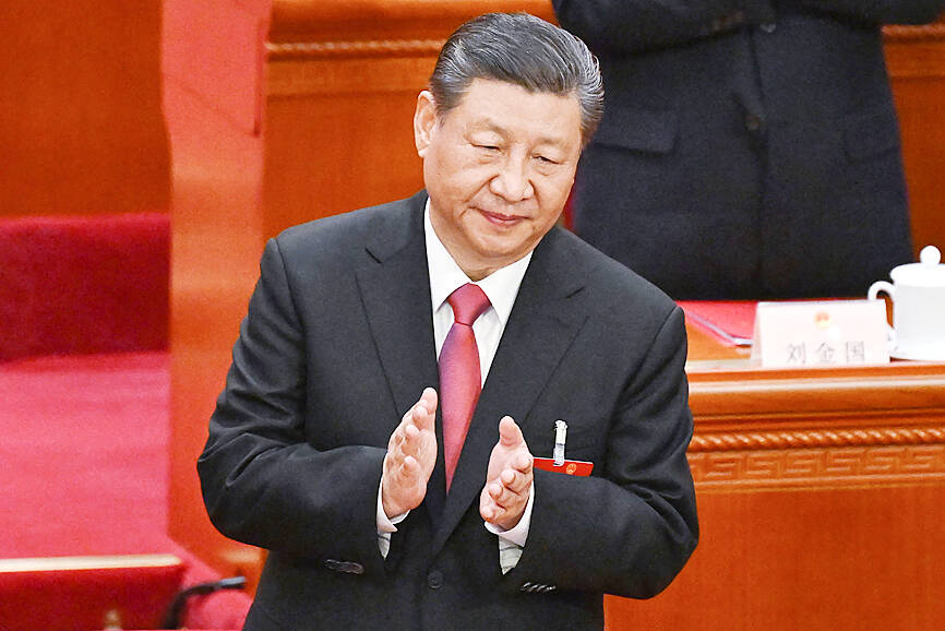 Delegates to the National People’s Congress, including Chinese President Xi Jinping (習近平), gathered at Beijing’s Great Hall of the People to rubber-stamp legislation at 3pm as the conclave came to an end.