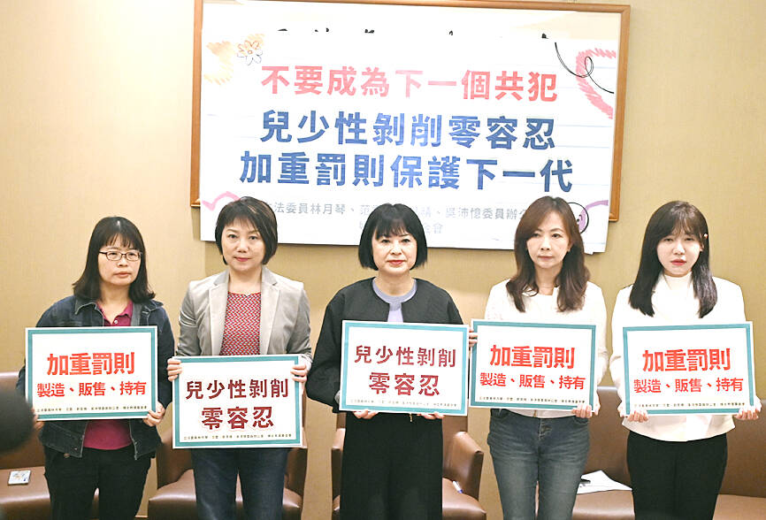 Separately, DPP Legislator Huang Jie (黃捷) said that she would propose amendments to the Criminal Code and Child and Youth Sexual Exploitation Prevention Act that would impose heavier punishments on people who download or secretly take pictures or make videos of children or teenagers.