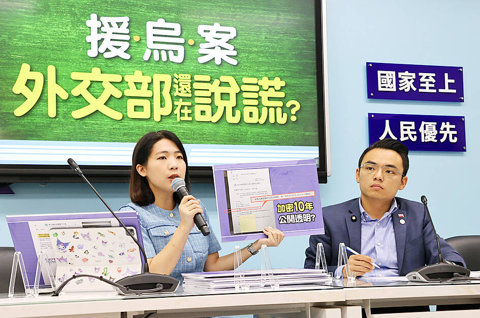 Premier Chen Chien-jen (陳建仁) and the Ministry of Foreign Affairs yesterday denounced Chinese Nationalist Party (KMT) Legislator Hsu Chiao-hsin (徐巧芯) for making false allegations about donations to Ukraine and disclosing confidential documents, with the ministry saying that it would take legal action.