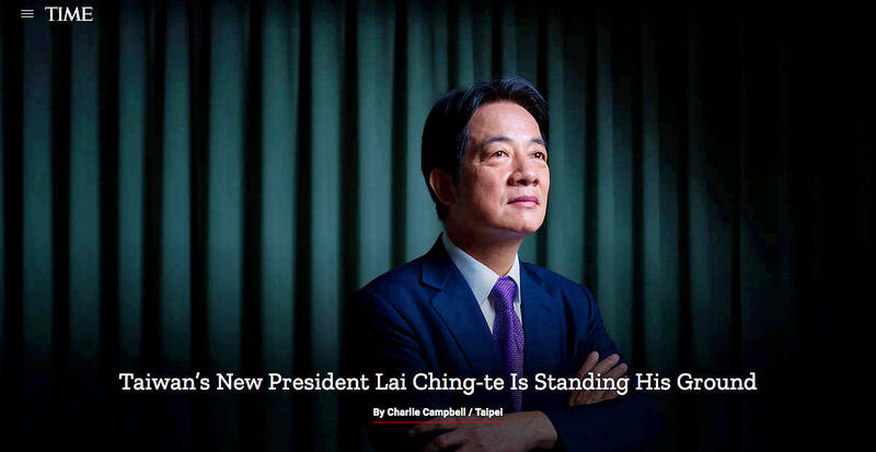 A prosperous Taiwan can bring about progress in China, and Taipei seeks peace and prosperity across the Taiwan Strait, President William Lai (賴清德) told Time magazine in an exclusive interview published yesterday, his first since becoming president.