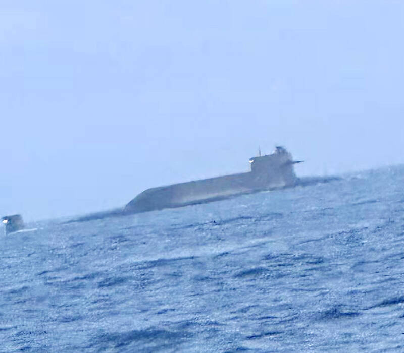 Taiwanese media published pictures taken by a Taiwanese fishing boat in the Taiwan Strait as dawn broke yesterday. It appeared to be a nuclear-armed Jin-class ballistic missile submarine.