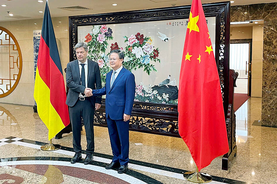 Meeting Chinese National Development and Reform Commission Chairman Zheng Shanjie (鄭珊潔) Habeck said the proposed EU tariffs were intended to level the playing field with China.
