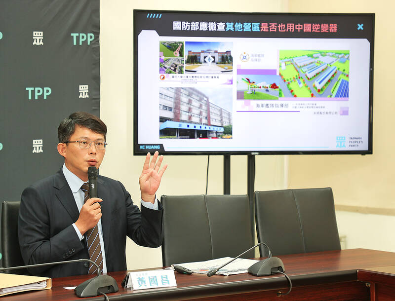 Taiwan People’s Party (TPP) Legislator Huang Kuo-chang (黃國昌) yesterday said that Yongliang Ltd (永梁) had contravened the law by using China-made photovoltaic inverters in a military complex and called for a general inspection of military bases to see if there are other similar breaches.
