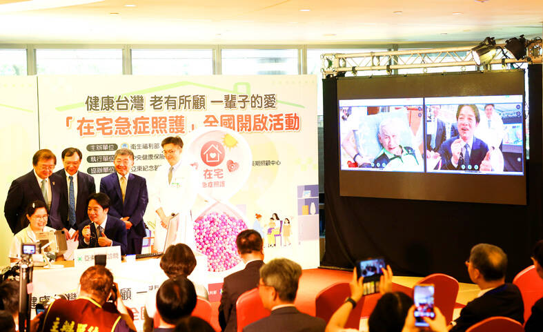 President William Lai (賴清德) yesterday visited a hospital to oversee implementation of the “acute care at home” trial program after amendments to the Rules of Medical Diagnosis and Treatment by Telecommunications (通訊診察治療辦法) aimed at expanding telemedicine services took effect on Monday.