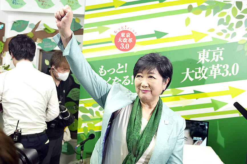 Tokyo Governor Yuriko Koike was yesterday projected to win re-election as head of Japan’s influential capital for a third four-year term, according to exit poll results by Japan Broadcasting Corp (NHK).