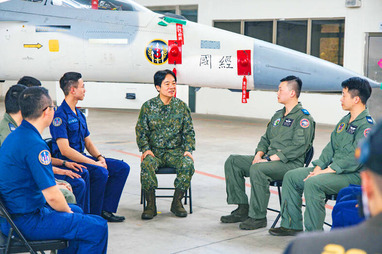 Wearing camouflaged military fatigues and taking questions in front of a Ching-kuo Indigenous Defense Fighter at an air base in Taichung, Lai said that military strength is not a simple mathematical question of addition and subtraction.