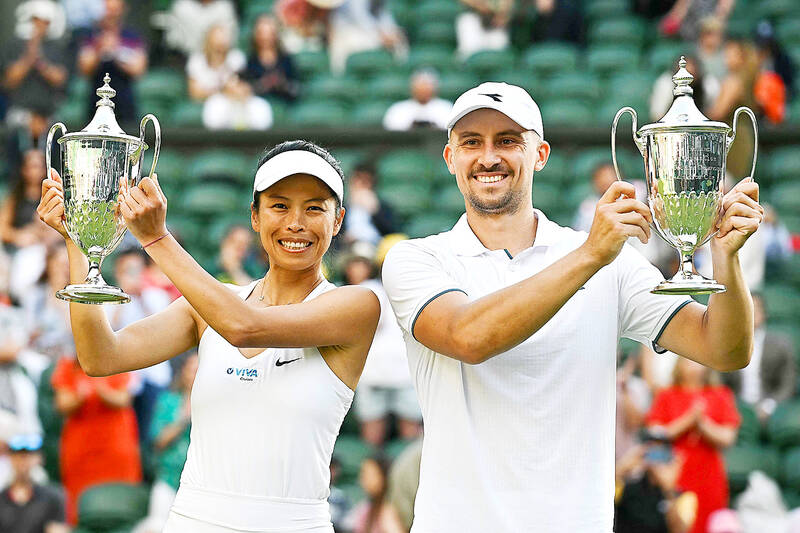 Taiwanese tennis ace Hsieh Su-wei (謝淑薇) on Sunday won the ninth Grand Slam title of her career when she and Jan Zielinski of Poland defeated Mexican duo Santiago Gonzalez and Giuliana Olmos in the mixed doubles final at Wimbledon in London.
