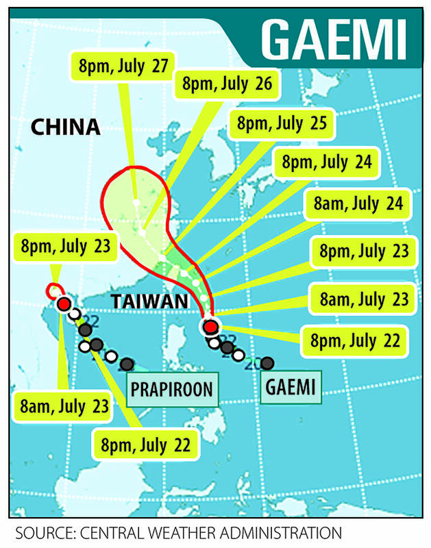 Liu added that Gaemi would also bring strong winds and extremely heavy rain in central and southern Taiwan.