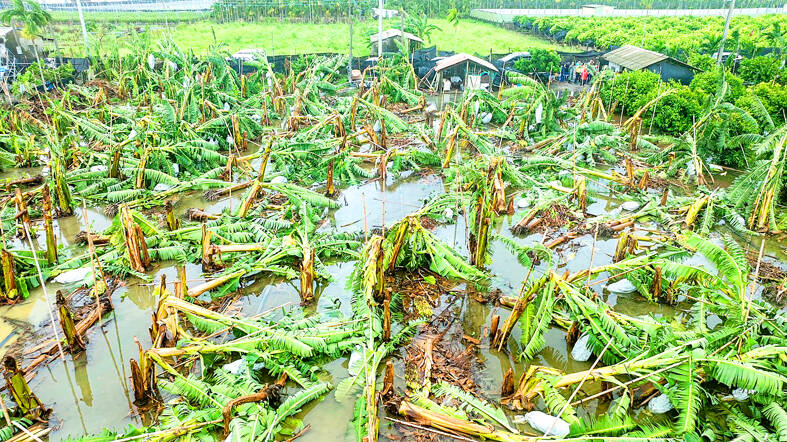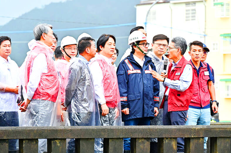 Lai announced the subsidies after being briefed about the storm situation during an inspection of severely affected areas in Kaohsiung’s Meinong District (美濃).