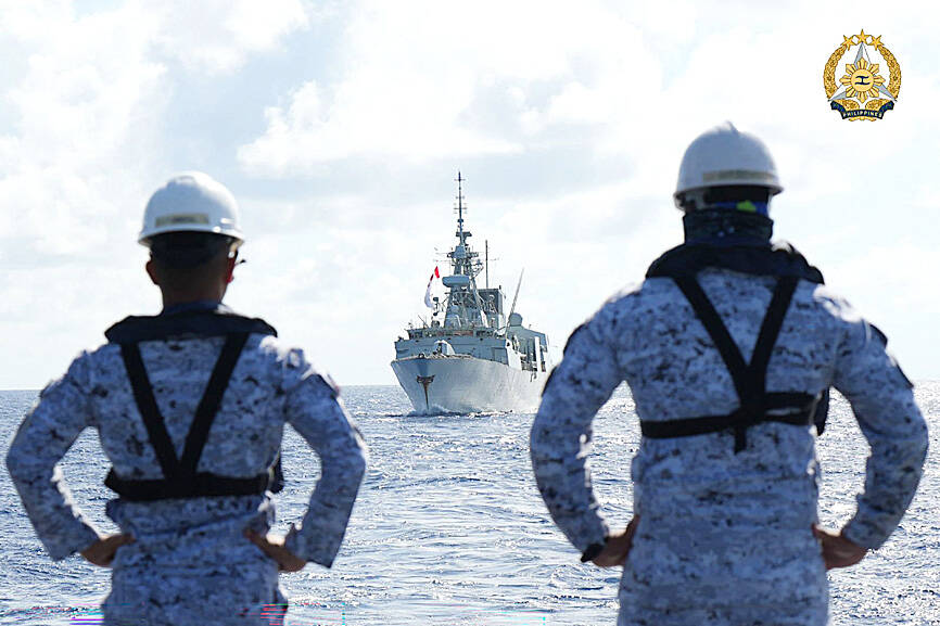 The US, Australia, Canada and the Philippines yesterday held air and naval maneuvers in what they said was a show of force to promote the rule of law in the disputed South China Sea, while China said it conducted air and sea combat patrols on the same day.
