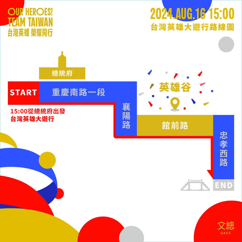 Before the parade, a party — to be held exclusively for the athletes, their coaches, family members and support staff, as well as referees — is to take place at the Presidential Office at 1pm tomorrow, with President William Lai (賴清德) expected to welcome and chat with attendees.