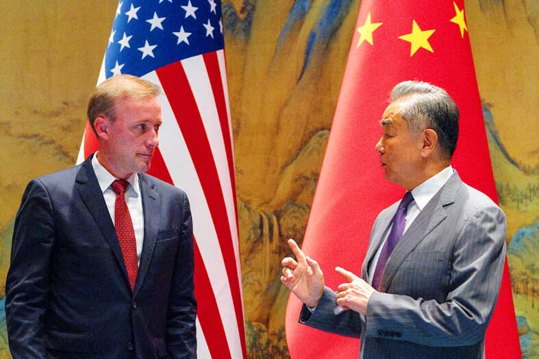Chinese Minister of Foreign Affairs Wang Yi (王毅) and US National Security Adviser Jake Sullivan discussed setting up new talks between their presidents in meetings aimed at managing the two nations’ difficult relationship.