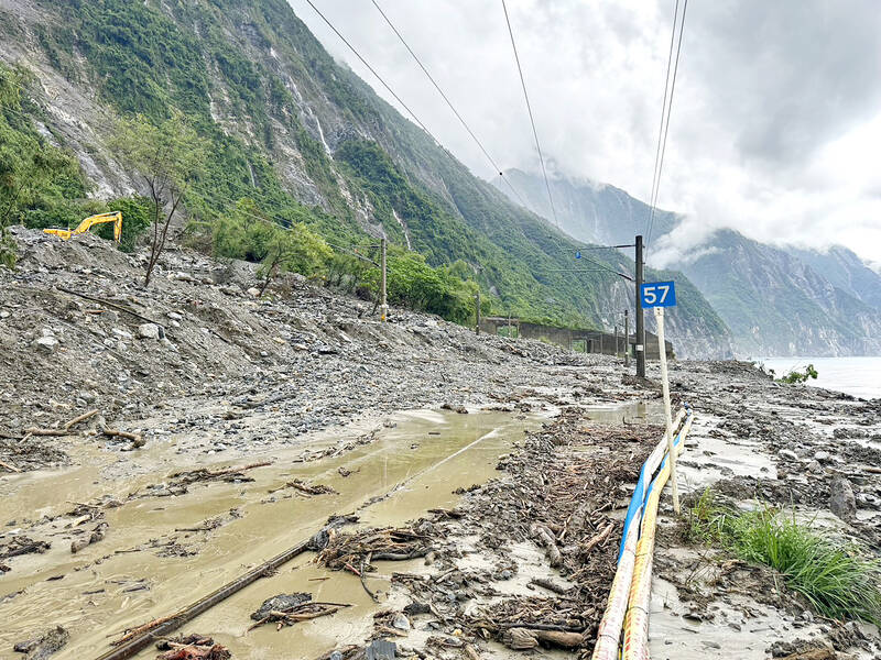 The mudflow also covered railway tracks at the same section, forcing Taiwan Railway Corp (臺鐵) to suspend services as well.