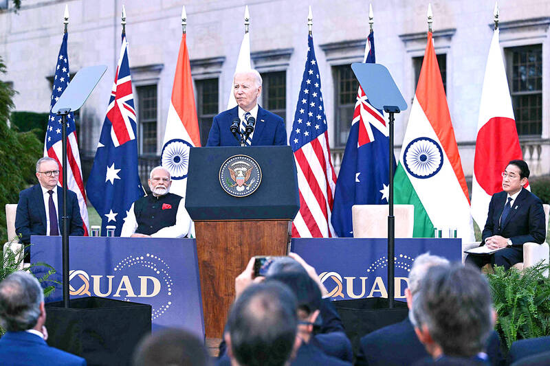 Biden said that while Chinese President Xi Jinping (習近平) was focusing on “domestic economic challenges,” he was also “looking to buy himself some diplomatic space, in my view, to aggressively pursue China’s interest.”