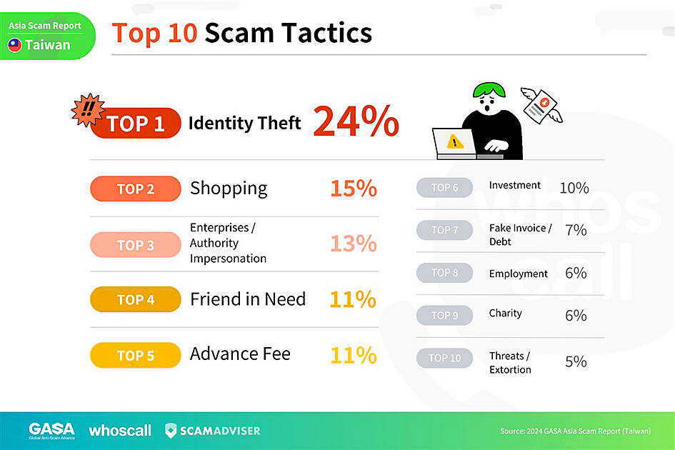 The most common type of scam in Taiwan was identity theft, with 24 percent of victims having experienced it, the survey showed.