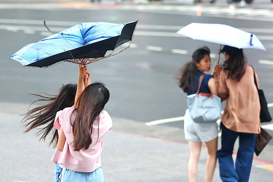 Winds between force 11 and 13 on the Beaufort scale were expected today areas south of Taichung, as well as Nantou and Hualien counties, and Taitung County’s Orchid Island (Lanyu, 蘭嶼) and Green Island (綠島), and Penghu, Kinmen and Lienchiang counties, the CWA said.